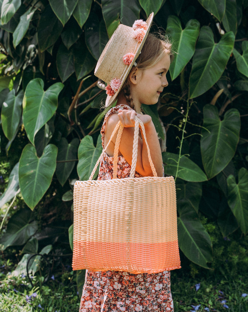 This small-sized Canasta Tote is handwoven from recycled plastic by our artisan team in Guatemala, using a wooden mold. Each bag takes up to 5 hours to complete, reflecting the care and skill that go into every piece.