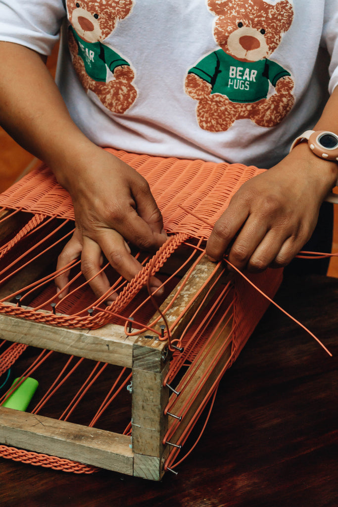 This medium-sized basket tote is handwoven from recycled plastic by our artisan team in Guatemala, using a wooden mold. Each bag takes up to 8 hours to complete, reflecting the care and skill that go into every piece.