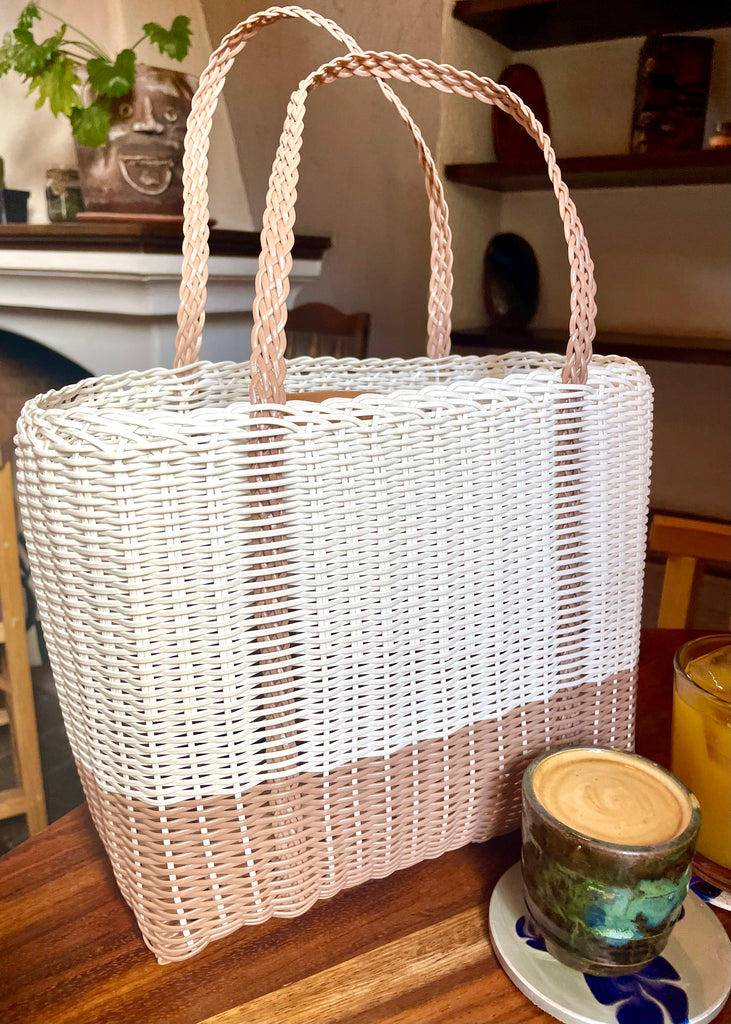 This small-sized Canasta Tote is handwoven from recycled plastic by our artisan team in Guatemala, using a wooden mold. Each bag takes up to 5 hours to complete, reflecting the care and skill that go into every piece.
